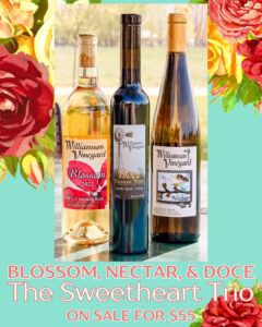 Our limited-time Sweetheart Trio features three perfectly curated pours — Blossom Rosé, Nectar Riesling, and Doce Dessert Wine — bundled together for $55. Whether you’re toasting, gifting, or sharing a glass (or three), it’s the perfect way to sip your way through Mother’s Day weekend.